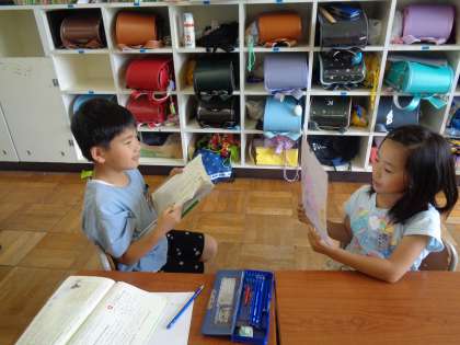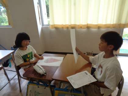 子供たちは、現実にはないけれどあったらいいなと思うものをそれぞれ考えました。自分の思い描いた道具を友達に紹介して、友達からアドバイスを受けてさらにパワーアップさせていました。納得のいく理想の道具ができあがったら、みんなで発表会をする予定です。