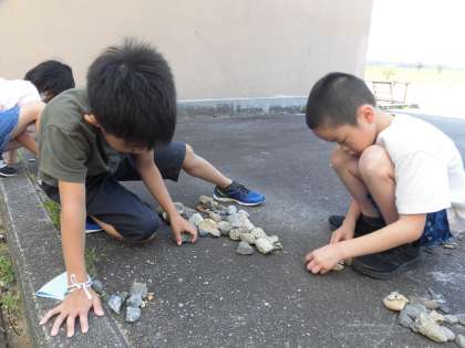 3年生 自然の石の形から 公開日 2023/07/06 更新日 2023/07/06 3年生 図画工作の学習で、石の色や形から想像したものを作る学習をしました。動物の顔や花、大きな恐竜等を作って楽しんでいました。