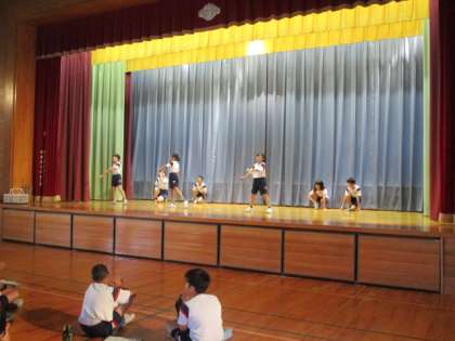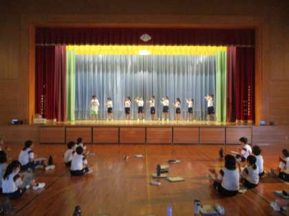 今日は、体育科で取り組んできたリズムダンスの発表会を行いました。最初は踊るのが苦手だった子も少しずつできることが増えていき、今日の発表会はみんなとても素敵な笑顔で踊っていました。