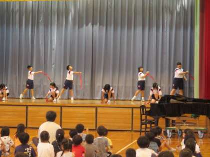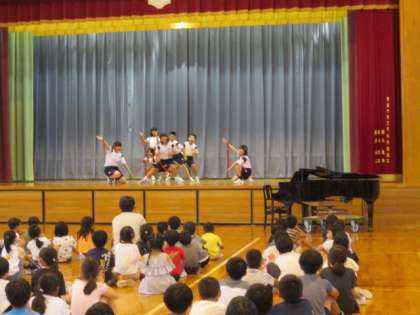 今日の神明ショータイムでは、数人の子どもが体育科で学習したリズムダンスを全校の前で発表しました。全校の手拍子を聞きながら楽しく踊ることができました。すてきなダンスをありがとう!