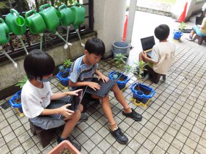 3年生 どれぐらい大きくなったかな? 公開日 2023/07/14 更新日 2023/07/14 3年生 理科の学習で育てている植物の観察をしました。クロームブックを使って写真をとり、観察したことをジャムボードにまとめました。