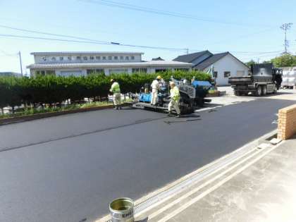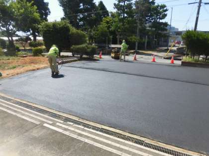 自治振興会、教育後援会、PTAの支援を受け、創校150周年記念事業として行われている校舎南側の舗装工事が、順調に進んでいます。来週からは、保護者や地域の皆様にも、ご利用いただけそうです。