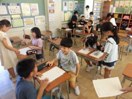 3年生 2学期スタート! 公開日 2023/08/28 更新日 2023/08/28 3年生 2学期が始まりました。教室では、夏休みの思い出を話したり、自由研究の紹介をしたりするなど、友達と楽しそうに話す姿が多く見られました。 学級活動の時間には、夏休みにどんなことをしたかを聞き回るゲームをしました。いろいろな友達と会話をしながらゲームを楽しみました。 明日から本格的な授業が始まります。2学期もみんなで、いろいろなことに挑戦してきましょう。