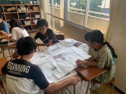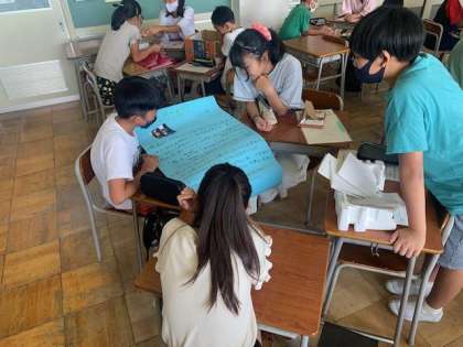 夏休みの作品紹介をしました。グループの友達に自分の作品を紹介し、感想を伝え合いました。実際に触って見たり、質問をし合ったりして、子供たちの夏休みの学びがよく伝わってきました。