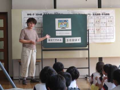 2学期の発育測定が行われました。夏休み中はメディアに触れる時間が増えたと思うので、養護教諭からメディアコントロールに関する指導をしました。時間を決めることや自分からやめることが、意識できるようになってほしいと思います。