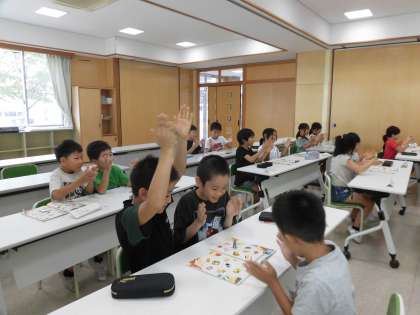 2学期の外国語活動が始まりました。1回目は、1学期の学習を思い出しながらゲームをしました。色々な単語を聞き分けながら、楽しく取り組むことができました。