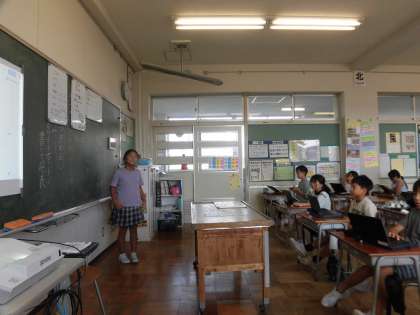 3年生 国語科「山小屋で3日間すごすなら」 公開日 2023/09/06 更新日 2023/09/06 3年生 国語科で対話の学習をしています。「山小屋で3日間すごすなら」というテーマについて、グループごとに、何をしたいか、何をもっていくかを話合いました。クロムブックの付箋機能を使って、考えを整理しながら決めました。最後は、どのグループもわかりやすく発表することができました。