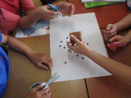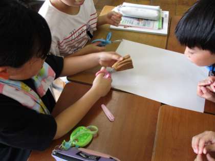 理科で育てているヘチマが乾燥し、種ができました。ヘチマを観察したり、どれだけの種ができているのか数えたりしました。子供たちはヘチマの感触を楽しんでいました。