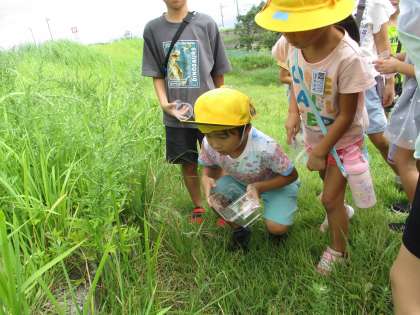 1年生は生活科の学習で、「夏の虫さがし」をしました。グラウンドや土手には、たくさんの虫や生き物がいて、子供たちは夢中になって探していました。少し暑さが和らいだおかげで、心地よい暑さを感じながら活動できました。
