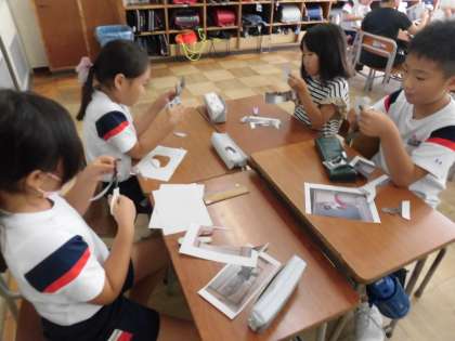 3年生 図画工作「小さな自分のお気に入り」 公開日 2023/09/12 更新日 2023/09/12 3年生 図画工作の学習で自分の姿を撮影し小さいサイズで印刷をして「小さな自分」をつくりました。それを、いろいろな場所において、小さな自分のようすを撮影しました。どんな写真になるのか楽しみです。