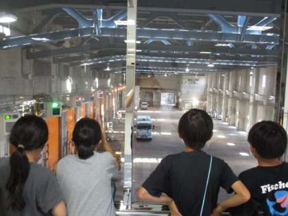富山地区広域圏クリーンセンターでの様子です。子供たちは、ごみピットに貯められているごみの量に驚いていました。また、ごみクレーンがごみをつかみ上げて投入ホッパに入れる様子を見ることができ、興奮していました。