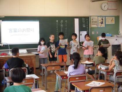 学習発表会の練習が始まりました。3年生は群読をします。今日はグループごとに役割分担をして読む練習をしました。一人で読む言葉とみんなで読む言葉を意識して練習をしています。今日の発表では、どのグループも元気よく声を出すことができました。