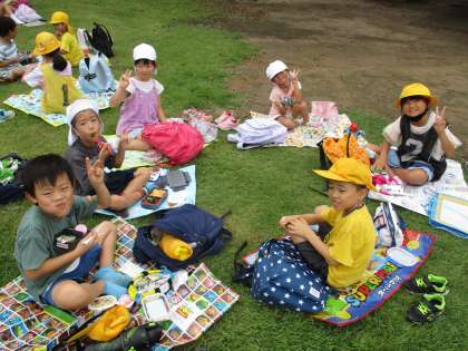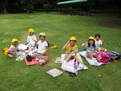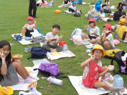 楽しいお弁当の時間です。みんな口いっぱいにほおばって、美味しそうに食べていました。