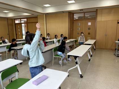 今年度、初めての外国語活動でした。子供たちは歌を歌ったり、ゲームをしたりしながら外国語に親しみました。