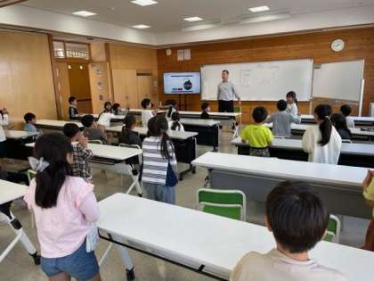 1年生は初めての外国語活動に取り組みました。ALTの先生の自己紹介の後、英語でのあいさつの仕方を教わったり、ゲームを楽しんだりしました。いつもとは違う学習に、笑顔があふれる時間となりました。