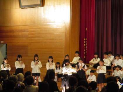 今日は家の人、地域の方に4・5年生の歌声を聞いていただきました。本番前は「緊張する」と言っていた子供たちでしがた、いざステージに立つと気持ちを切り替えて真剣な表情に変わりました。今まで練習してきたことを発揮しようとする素敵な姿でした。