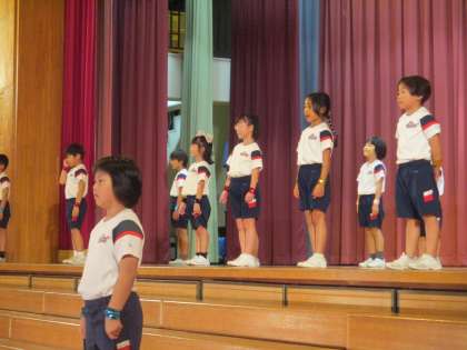子供たちは、家族に最高の演技をとどけようをめあてに決めて、一人一人が精一杯頑張りました。発表後の振り返りでは、「たくさんの拍手をもらってうれしかった」や「今日は今までの練習の中で1番良い演技ができた」と子供たちはそれぞれ自身の成長を実感することができました。