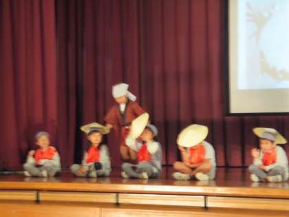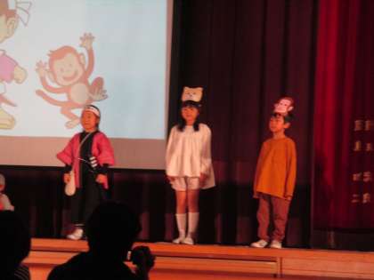 本番は、どの子も自分の役になりきって、楽しんで演技していました。終わった後には、「いつもよりも大きなこえでいえた」「みんながいたからがんばれた」「できなかったことを2ねんせいではがんばりたい」など、どの子も前向きにこの経験を捉えていました。本当にみんなよく頑張りましたね。