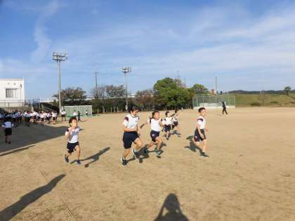 10月末の神明陸上記録会に向けて、練習をしています。腕振りのこと、スタートの姿勢のことなど、一人一人練習するときに意識すること(目当て)を決めて朝のトレーニングに取り組んでいます。自分の最高記録が出るようにがんばりましょう!