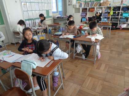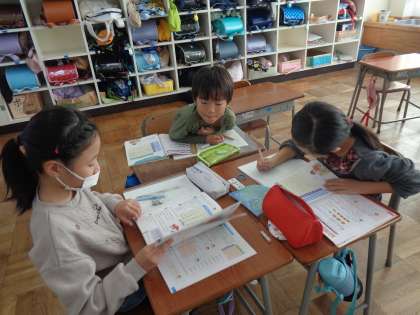 子供たちは、毎日かけ算九九を暗唱しています。算数の時間には、九九ビンゴや九九かるたを行って習熟度を楽しみながら実感しています。