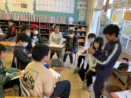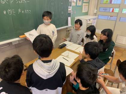 外国語科の時間には、子供たちが調べたFoodchainについてのスピーチの発表をしました。絵を見せたり、ジェスチャーを加えたりしながら、楽しく発表ができました。