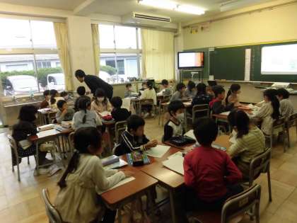 1年生は国語科の「じどう車ずかんをつくろう」の学習をしました。自分が調べてまとめた自動車について書いたカードをグループの友達に紹介しました。どの子も、自分が見つけた車の「しごと」と「つくり」を上手に文章にまとめて伝えることができました。