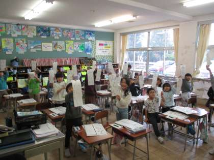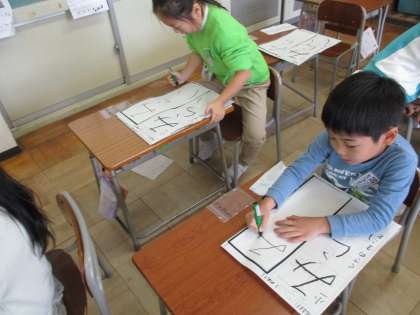 1年生にとっては初めてとなる書き初めの練習を行いました。下に敷く手本を作ったり、用具の名前や使い方を確認したりした後に、いよいよ字を書いてみました。どの子も手本をじっくりと見ながら、丁寧に書いていました。これから、新年に向けてたくさん練習していきます。