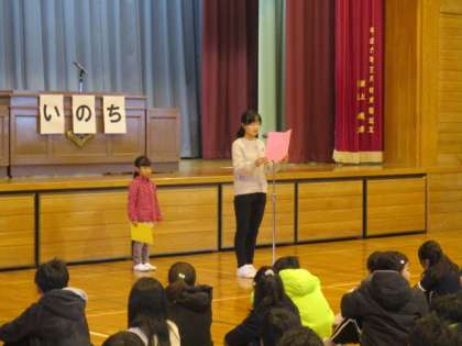 終業式では、校長先生から各学年の2学期のがんばりや「いのち」についてのお話、代表児童の作文発表がありました。どの学年も学習や運動、学校行事に真剣に取り組んだ2学期でしたね!