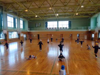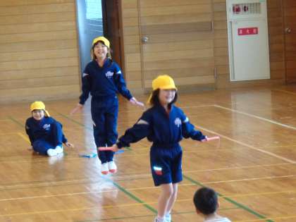 8の字跳びは、色団ごとに協力して、跳べない子をサポートしながら練習に取り組んでいます。