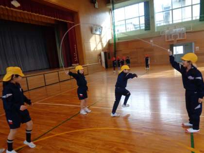 3学期の体育は、なわとびでスタートしました。短縄は、上手な友達の跳び方を見て参考にしながら自分の技にチャレンジしています。