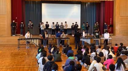 昼休みにある歌声タイムで、合奏の発表をしました。音楽の時間に練習を積み重ねた「風を切って」を堂々と演奏することができました。