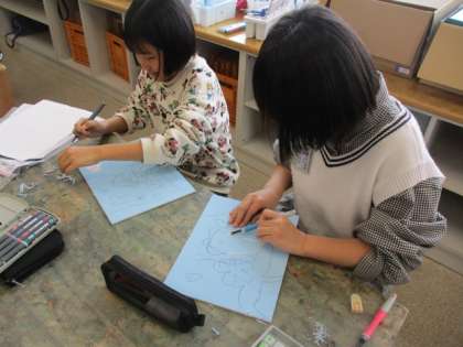 図工では、版画に取り組んでいます。4〜5人で一つの作品(春夏秋冬に関連したもの)をつくっています。どのような作品になるのか楽しみですね!