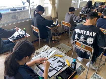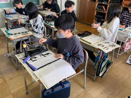 書写の時間には、「ゆずり葉」の練習を積み重ねてきました。今日は、清書を完成させました。1回目の時よりも丁寧に書くことができています。