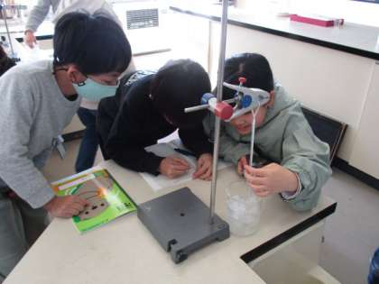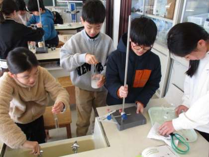 理科「水のすがたと温度」では、水を冷やしたときの様子や温度の変化を調べ、表にまとめました。子供たちは役割を決めて、協力して実験に取り組んでいました。
