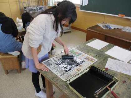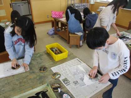 図工の版画では、実際に刷ってみると掘りが不十分だったり、手直しが必要だったりと試行錯誤しながら取り組む姿が多く見られました。完成が楽しみですね!!
