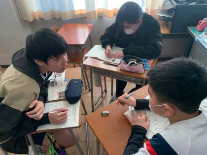 社会科の時間には、歴史の最後の時間として、現代の日本が抱える問題について考えました。少子高齢化、災害、領土問題等、様々な問題を調べました。