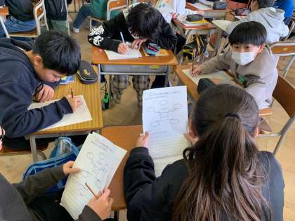 現代の日本の問題について伝え合いました。調べたことを聞き合い、日本にとってどの問題が重要か、一つ選びました。次回は少し、話合いをします。