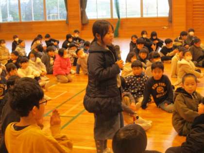 3年生 神明ショータイム 公開日 2024/02/21 更新日 2024/02/21 3年生 今年度最後の神明ショータイムがありました。3年生からは、2組のチームが参加して、縄跳びの技とダンス・歌の発表をしました。発表後には、全校のみんなから、たくさんの拍手をもらいました。ショータイムの最後には、積極的に感想を伝える姿もありました。 これからも、いろいろなことにチャレンジしていきましょう。