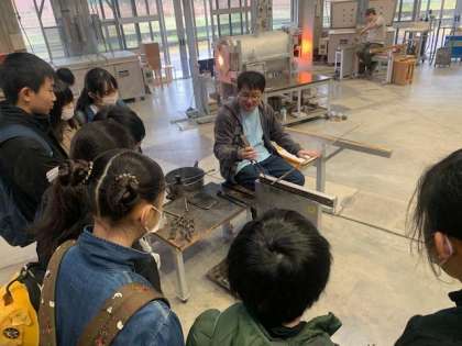 ガラス工房で、卒業制作を行いました。今回は、ペーパーウェイトをつくりました。ガラス作家さんの話をよく聞き、デザインを考えました。