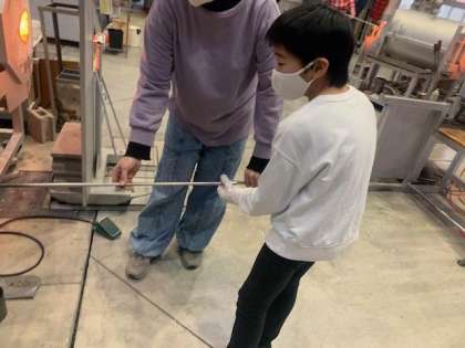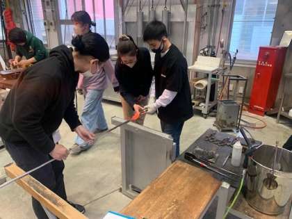 実際に、ガラス作家さんと一緒に制作をします。自分の考えたデザインのようになったでしょうか。作品は、卒業式の日に、みんなに渡します!楽しみにしていて下さいね。