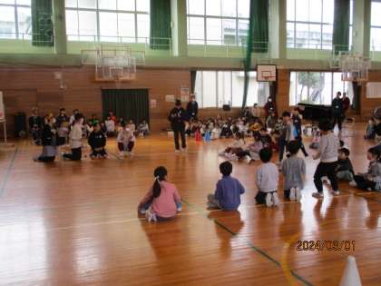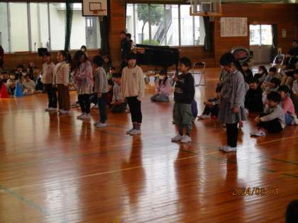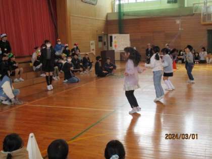 1年生は卒業を祝う会で「6年生に挑戦!」という出し物をしました。なわとびやけん玉で真剣勝負しました。優しい6年生のおかげで、勝っても負けても、みんなが笑顔になる時間となりました。残りの日々も、たくさん6年生との思い出を作りたいですね。