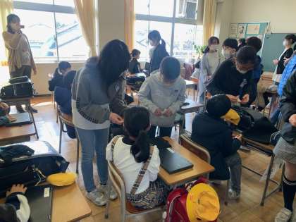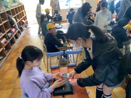 在校生のみんなに、メッセージカードをおくりました。1年間一緒に過ごしたファミリー班の仲間に、ありがとうの気持ちを込めて、渡していました。