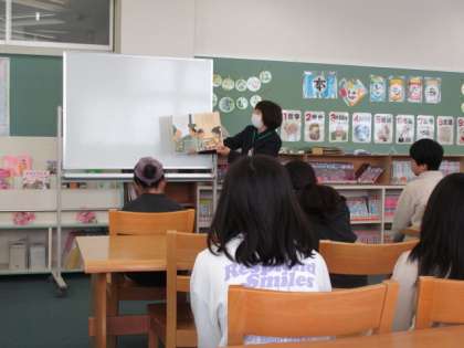 学校司書の先生に図書館オリエンテーションをしていただきました。昨年度は、目標読書冊数の年間6000冊を達成しました!今年度もたくさん図書室を利用して本を読みましょう!