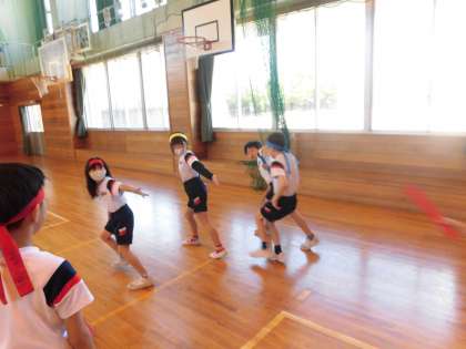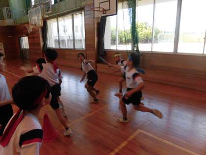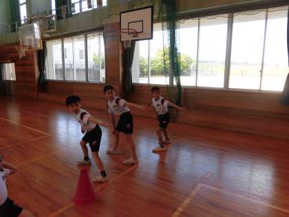 リレーのパスの練習しました。コツを覚えると、スムーズにバトンパスができていました。