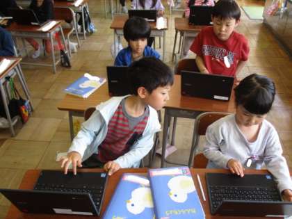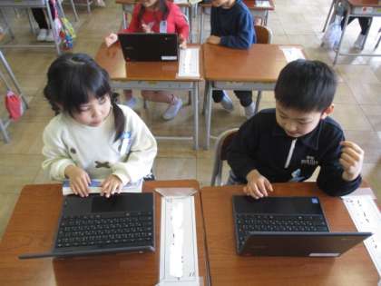 6年生にクロムブックの設定を手伝ってもらい、パスワード入力の練習やクラスルームの開き方練習をしました。子供たちはどのように操作するのかを友達と確認しながら進めていました。