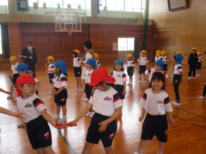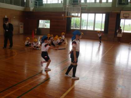 2年生と一緒に運動会のリレーの練習をしました。今年度の低学年リレーは折り返しリレーです。どのように走るのかを確認しました。