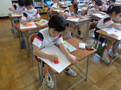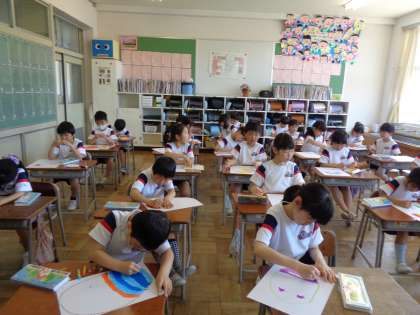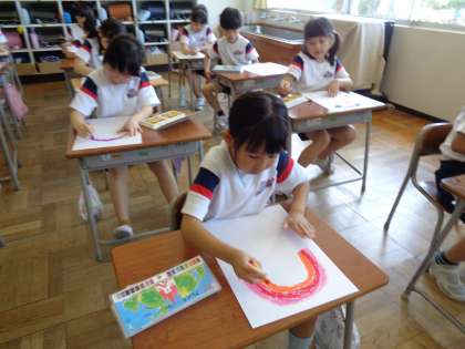 図工では、「ふしぎな たまご」の学習をはじめました。今日は、「こんなたまごがあったら、おもしろいな」と思うたまごを、工夫して描きました。