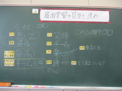 運動会を終えて間もないですが、2週間後に宿泊学習です!今日は、宿泊学習の目当てを考えました。児童会スローガンや運動会スローガンを考えた経験を活かし、とても上手く学級会が開かれていました。
