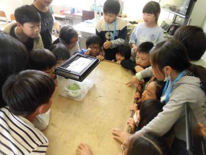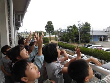 理科の学習で大切に育てていたモンシロチョウを自然にかえしました。幼虫から成虫まで毎日丁寧に様子を観察し、お世話をしてきました。「頑張って飛んでいってね」と手を振りながら笑顔で見送る姿がとてもすてきでした。