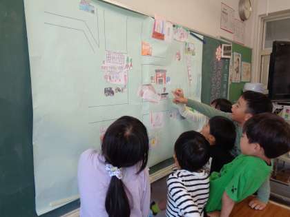 まちたんけんで見てきたことを、みんなで地図にまとめました。